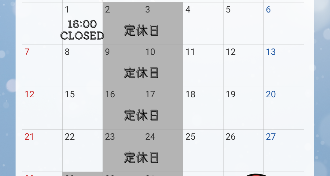 明日と明後日は定休日となりますので、ご了承くださいませ🙇🏻‍♀️